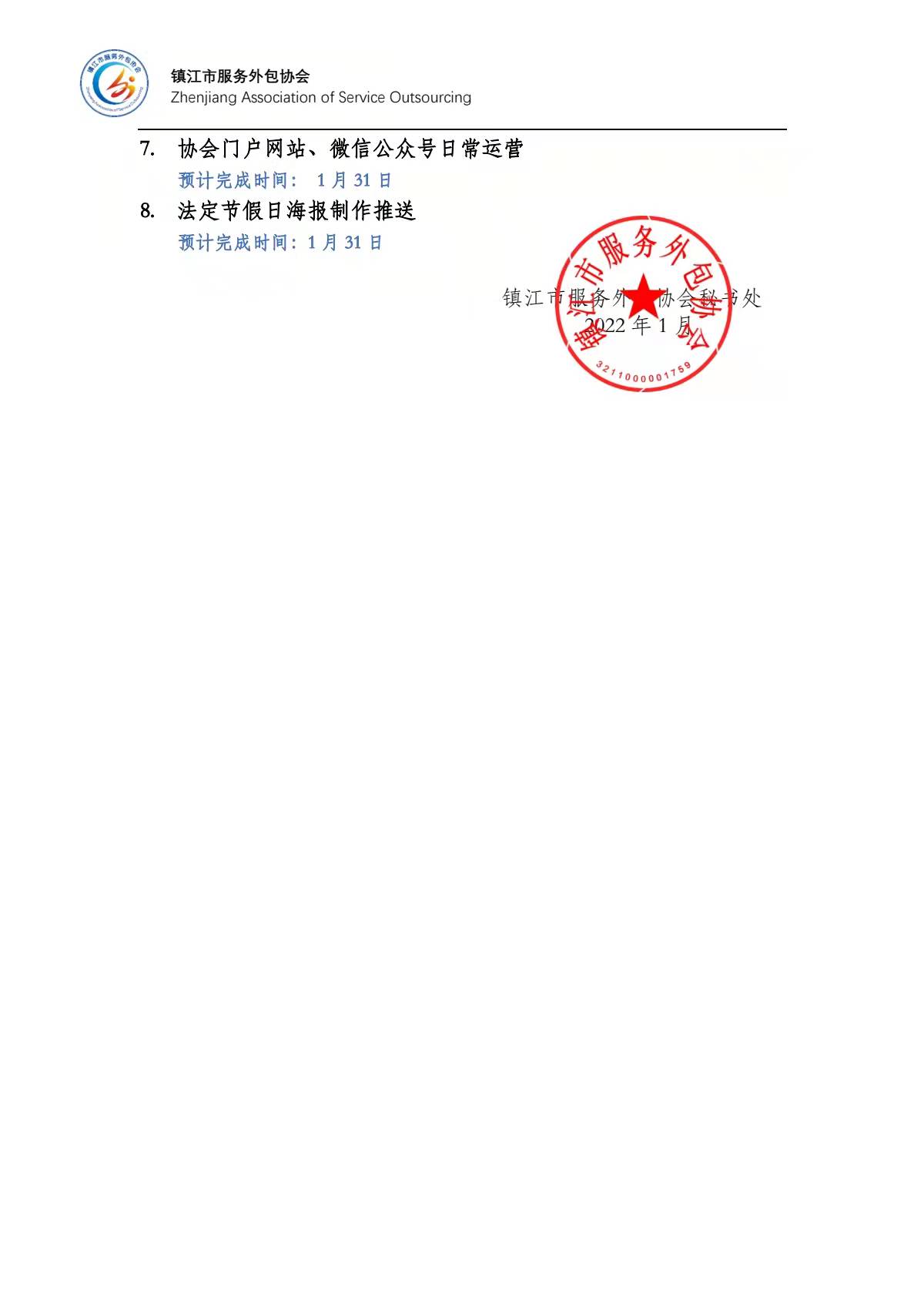 2022年1月协会工作计划